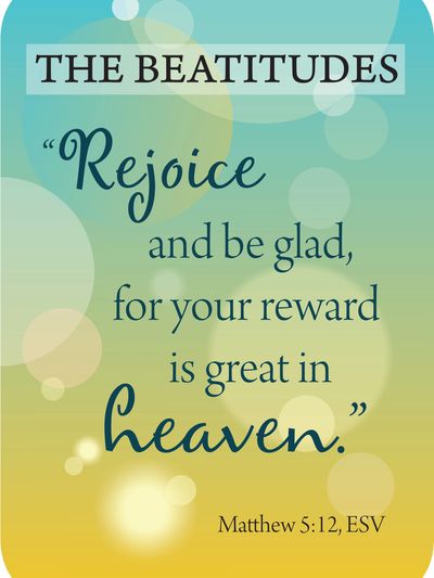 When Jesus saw the crowds, he went up the mountain, and after he sat down, his disciples came to him. And he began to speak and taught them, saying: “Blessed are the poor in spirit, for theirs is the kingdom of heaven. “Blessed are those who mourn, for they will be comforted. “Blessed are the meek, for they will inherit the earth. “Blessed are those who hunger and thirst for righteousness, for they will be filled. “Blessed are the merciful, for they will receive mercy. “Blessed are the pure in heart, for they will see God. “Blessed are the peacemakers, for they will be called children of God. “Blessed are those who are persecuted for the sake of righteousness, for theirs is the kingdom of heaven. “Blessed are you when people revile you and persecute you and utter all kinds of evil against you falsely on my account. Rejoice and be glad, for your reward is great in heaven, for in the same way they persecuted the prophets who were before you.